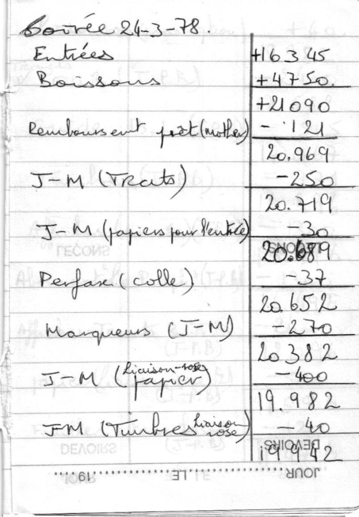 Comptes de la soirée du 24/03/1978