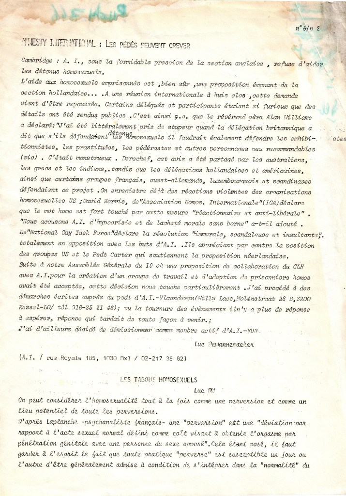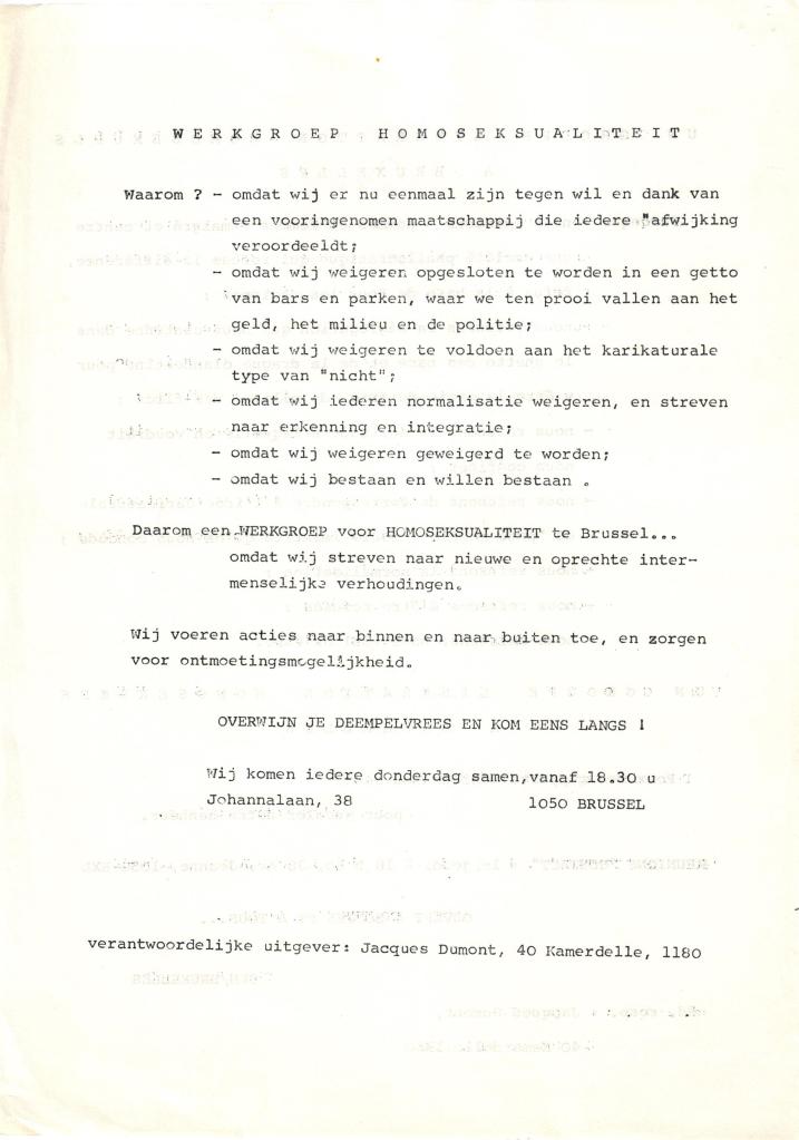Journée Homo Lesbienne Anvers samedi 9/5/1981