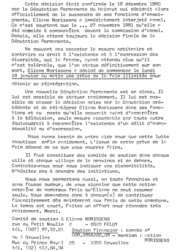 Journée de soutien à Eliane Morissens à Mons le samedi 24/10/1981