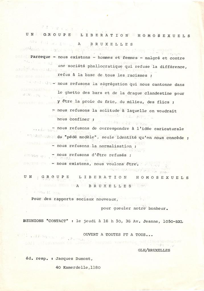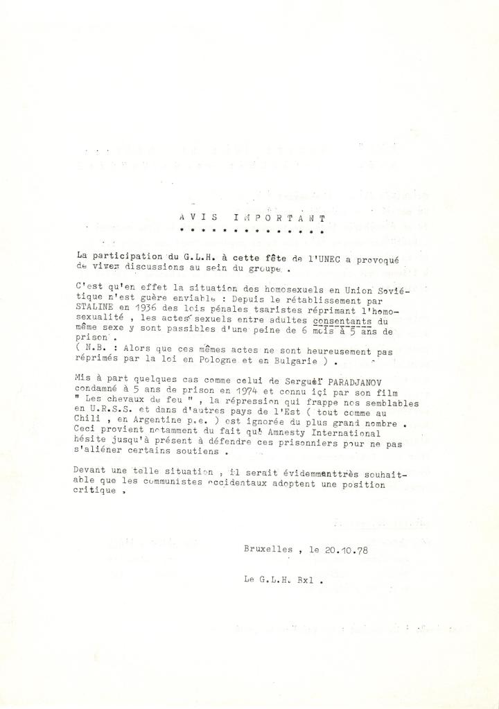 Texte fondateur du GLH en septembre 1976