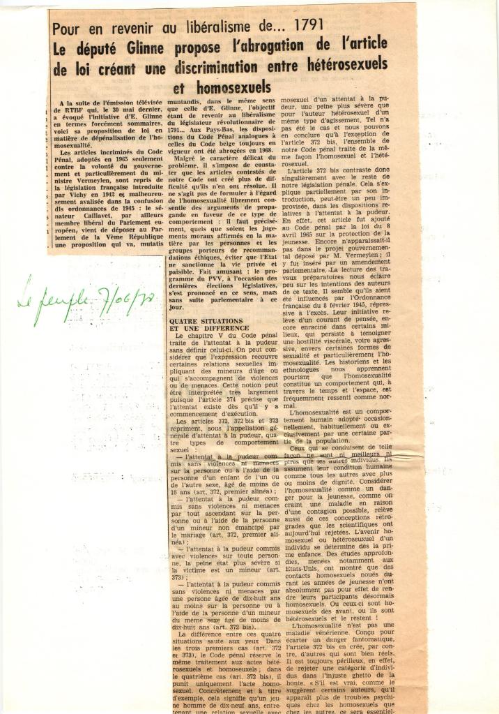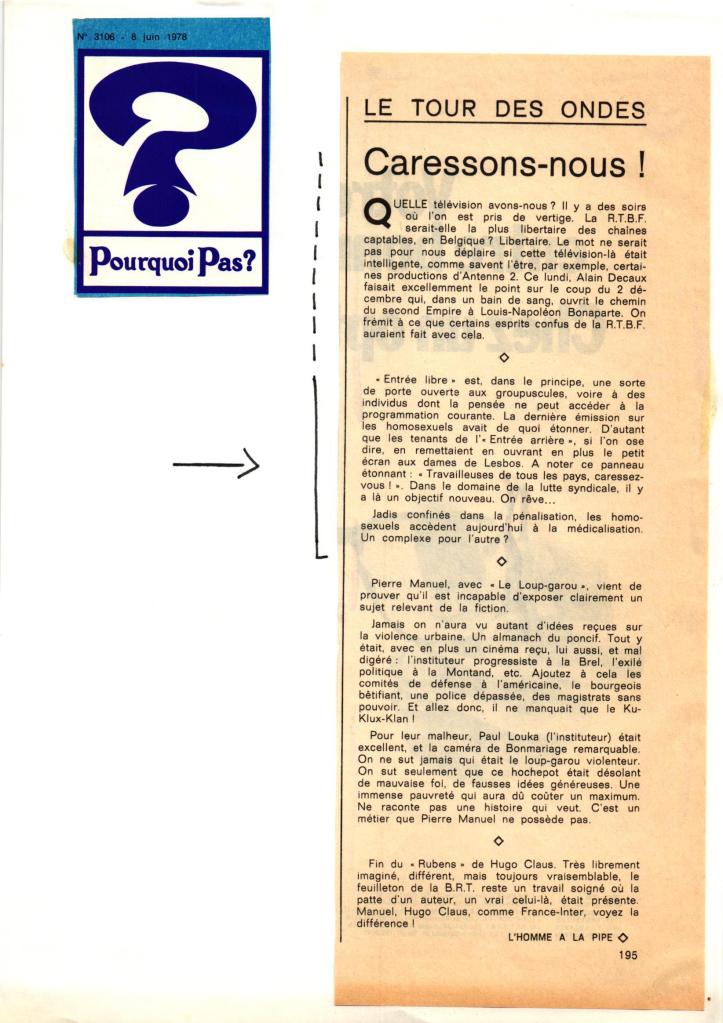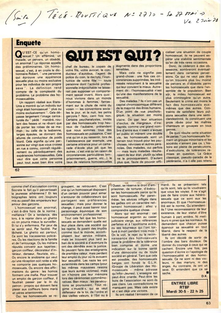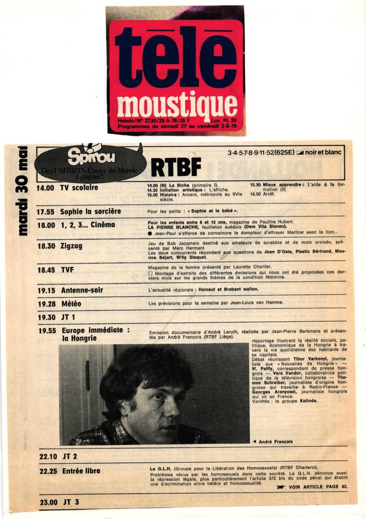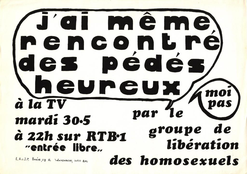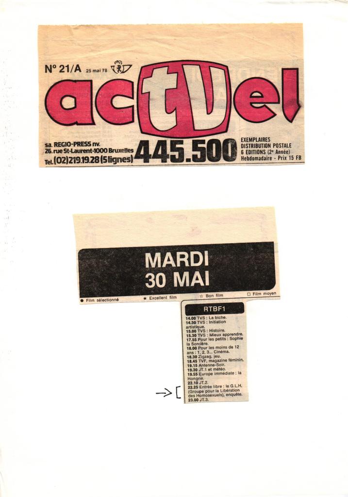 Emission TV « J’ai même rencontré des pédés heureux ». Diffusion sur la RTBF le mardi 30/05/1978
