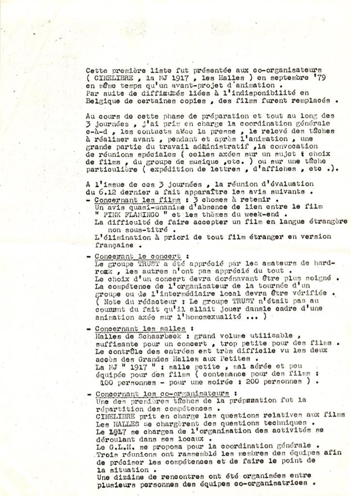 Premier Homo-Films à Bruxelles du 30/11 au 2/12/1979