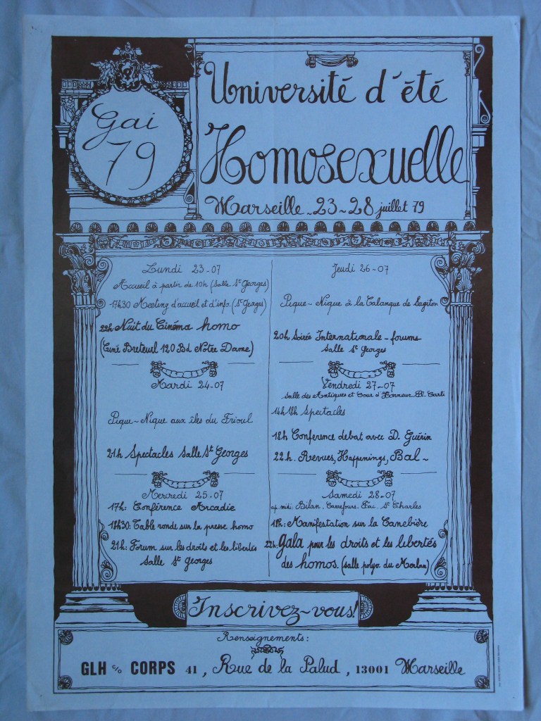 Université homosexuelle d’été à Marseille du dimanche 22/07 au dimanche 29/07/1979