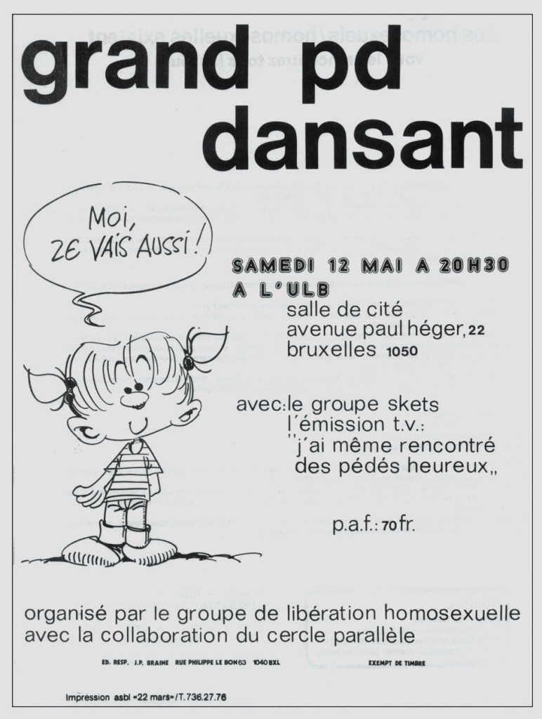 Une séquence de l’émission « Entrée Libre » du centre RTBF Charleroi intitulée: « J’ai même rencontré des pédés heureux » y fut tournée.