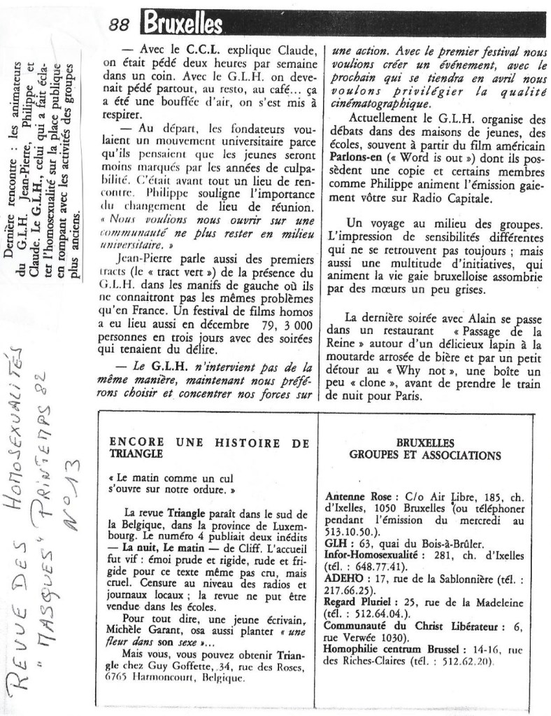 Article de la revue française « Masques » au printemps 82